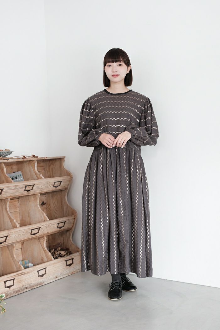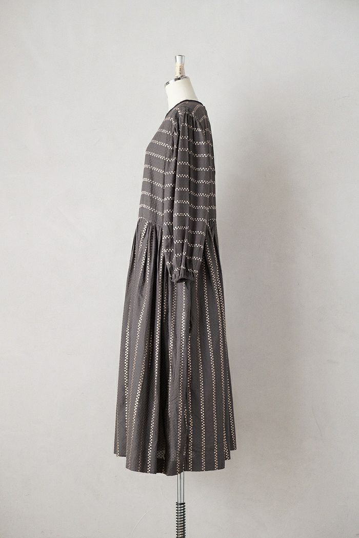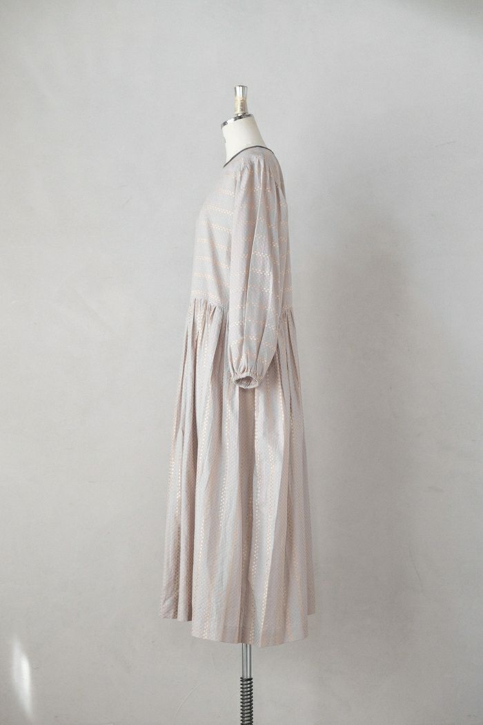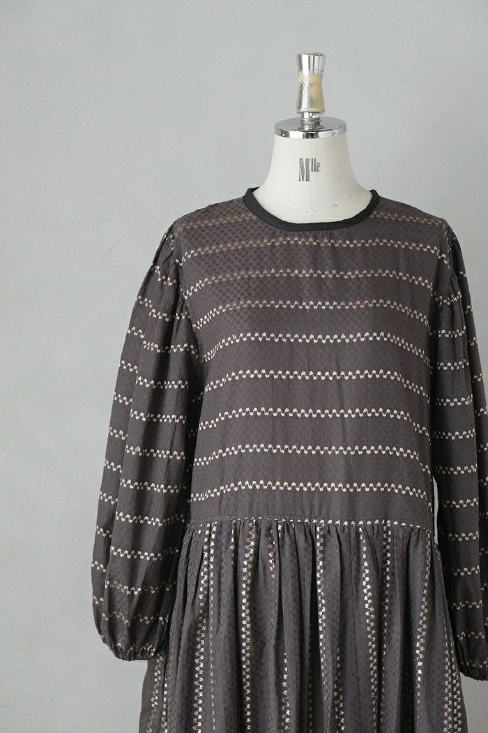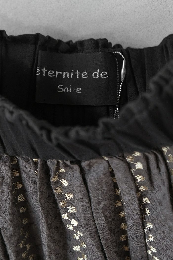 他の画像を見る e’ternite’ de Soi-e エテルニテドゥソワ ドビーストライプ柄金糸入りギャザーワンピース(24AW) 定価 ¥ 23,100 35%OFF ¥ 15,200 税込 お気に入りに登録する