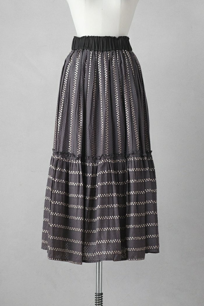 他の画像を見る e’ternite’ de Soi-e エテルニテドゥソワ ドビーストライプ柄金糸入りスカート(24AW) 定価 ¥ 17,600 35%OFF ¥ 11,500 税込 お気に入りに登録する