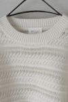 ウールのあたたかみと、コットンのさらりとしたドライな質感がミックスしたニット。異なる素材が重なり合うことで生まれた、奥行きのある透かし柄のニットです。