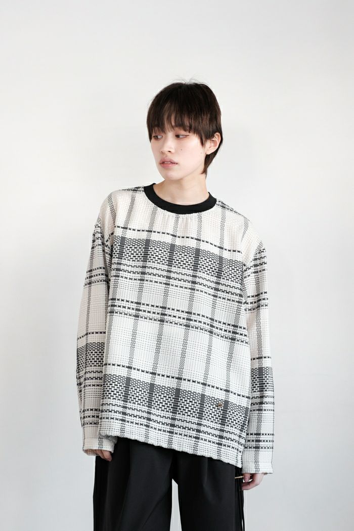 他の画像を見る CULLNI クルニ Sheer Tile Check Drawstring Long Sleeve Pullover(25SS) 定価 ¥ 26,400 34%OFF ¥ 17,501 税込 お気に入りに登録する