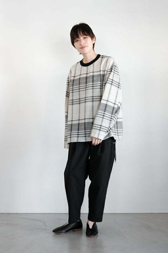 他の画像を見る CULLNI クルニ Sheer Tile Check Drawstring Long Sleeve Pullover(25SS) 定価 ¥ 28,600 35%OFF ¥ 18,601 税込 お気に入りに登録する