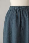 切り替えの入ったデザインで、ギャザースカートでもボリュームが出過ぎず自然なシルエット。大きなポケットや切り替え部分に走らせたダブルステッチもポイント。ウエストゴムの仕様でリラックスして履けるのも嬉しいポイント。ウエストの紐でサイズ調整も可能です。