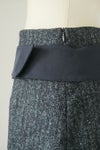 様々な色の糸で織り込まれており、深いブルーグリーンやチャコールグレーのようにも見える絶妙な色合いが魅力です。セミタイトをベースに、裾に向かってやや広がるシルエット。前後中央の深いスリットが、重たい印象になりがちなロングスカートも軽やかに見せてくれます。スリットの上辺りまで裏地付き。同シリーズのブラウスとのセットアップも素敵ですよ。ベルト部分ポケット1付き、左脇ファスナー開き仕様。