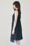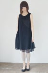 ブラックドレスに重なるシフォンのドレープが、女性らしく華やかなワンピース。フロントは、カシュクール風に重ねたシフォンの裾が、軽やかに揺れてフェミニンなデザインです。後ろスカートにもシフォンが重なり、バックウエストのたっぷりギャザーで、大人の可愛らしさをプラスしています。オールシーズン対応の素材で、オケージョン対応にも安心なブラックドレス。軽やかなポリエステル素材なので、普段のお出かけにも着ていただけます。左肩ボタンと左脇ファスナー開閉。