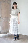 Tシャツと総レースのスカートをドッキングさせたワンピース。