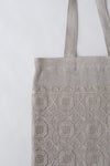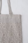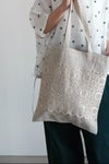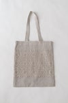 片面いっぱいに広がる刺繍が美しいバッグ。カジュアルになりがちなリネンバッグが刺繍と箔プリントによって上品なアイテムに。 裏地がついているので、強度も安心。内側にポケット付き。
