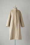 裏地の作りも抜かりなく、表地と同じ素材を贅沢に使用し、 コートを脱いだ時にも美しく見えるように配色使いで仕立てられています。 中綿入りなのでとても軽くて暖かく、 寒い季節には欠かせない一着。 機能性もデザイン性も満足いただけるコートです。