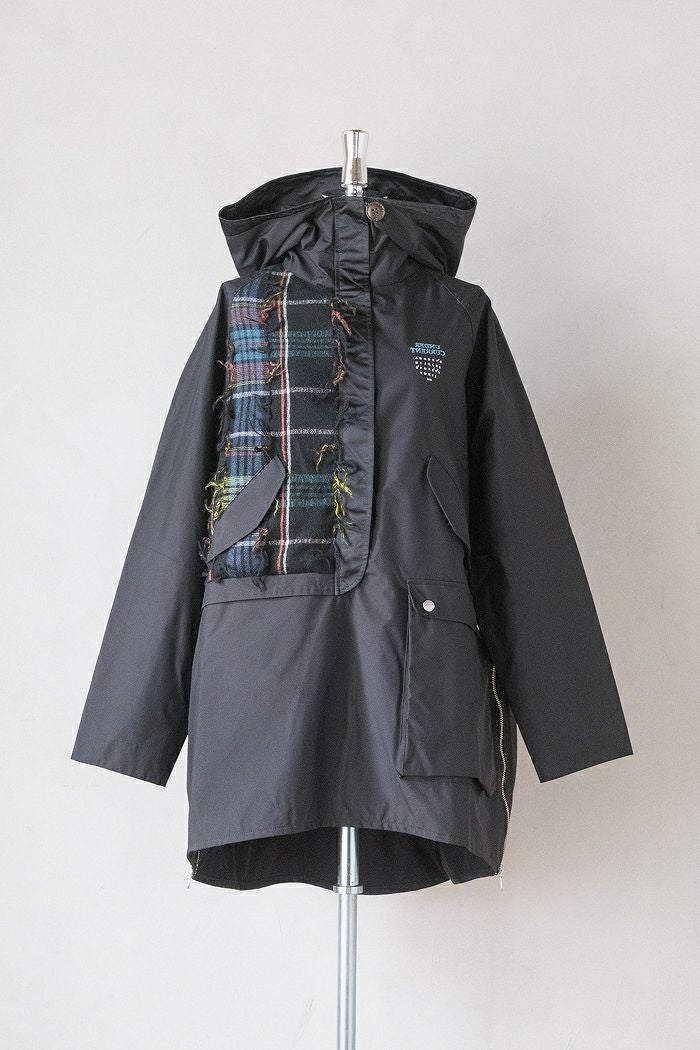防水透湿性に優れたeVent FABRICSの高機能スリーレイヤー素材を採用した軽く薄手ながらも確かな防寒性が魅力のアウトドアフーディーコート。シンプル一辺倒になりがちなアウトドアアウターの右胸にオリジナルのフリンジウールチェックを使用し、機能性とデザイン性を両立させたアイテムです。