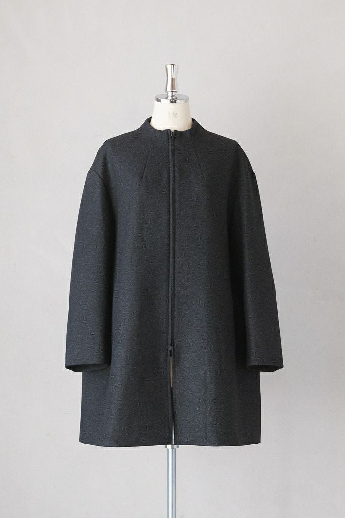 軽くて暖かな高密フラノ生地のボトルネックハーフコート