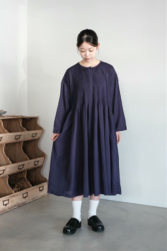 前後の上身頃に施されたピンタックが美しいワンピース