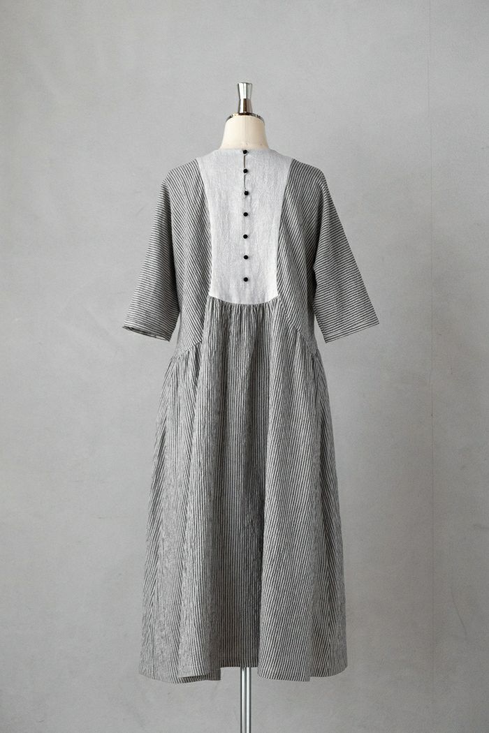 リネンコットンストライプ・ヨーク&ギャザーワンピース(25SS)