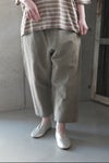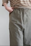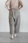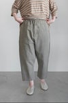 コットンリネンの交織高密度ツイル生地を使用したサルエルパンツ。