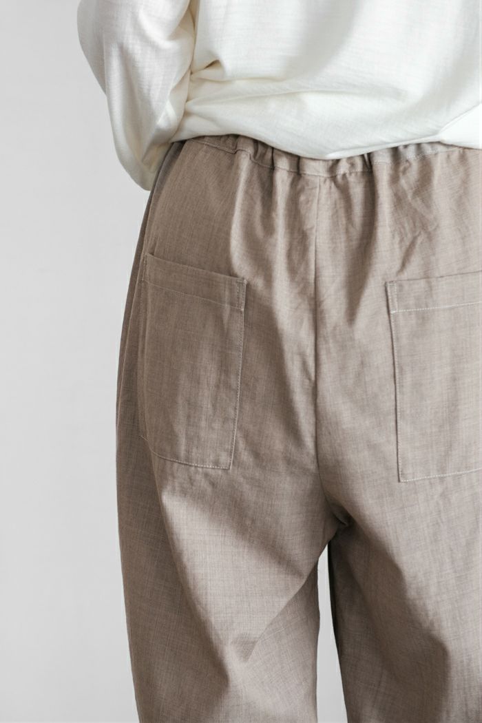 極細のウールを使用した、しなやかで柔らかい着心地のパンツ。 ウールはオーストラリアのトレザービリティウールを使用。 (トレザービリティー:その製品原料元追跡可能な物)