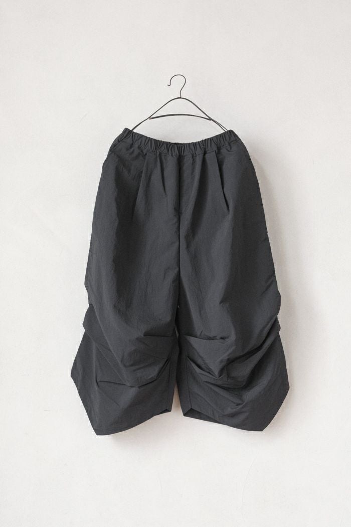 フロントの下部にランダムなタックを入れた7分丈パンツ。