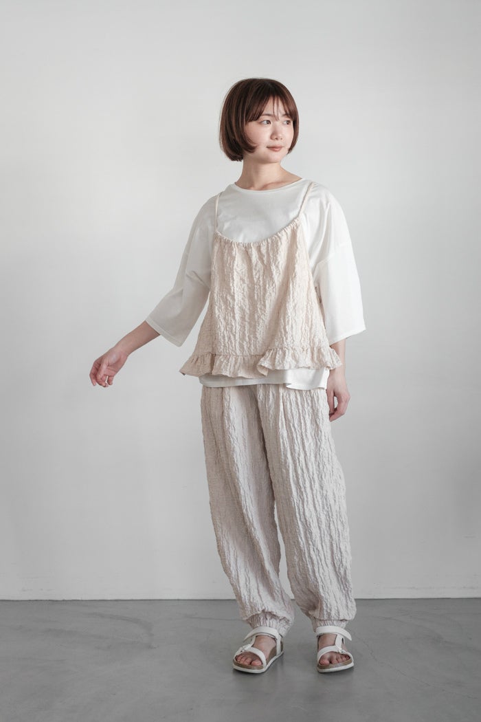 他の画像を見る maison de soil メゾン ド ソイル 60s AUTO LOOM LINEN PLAIN OVERDYE EASY CROPPED PANTS(26SS) ¥ 27,500 税込 SOLD OUT お気に入りに登録する