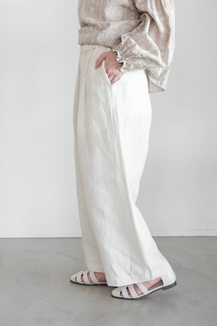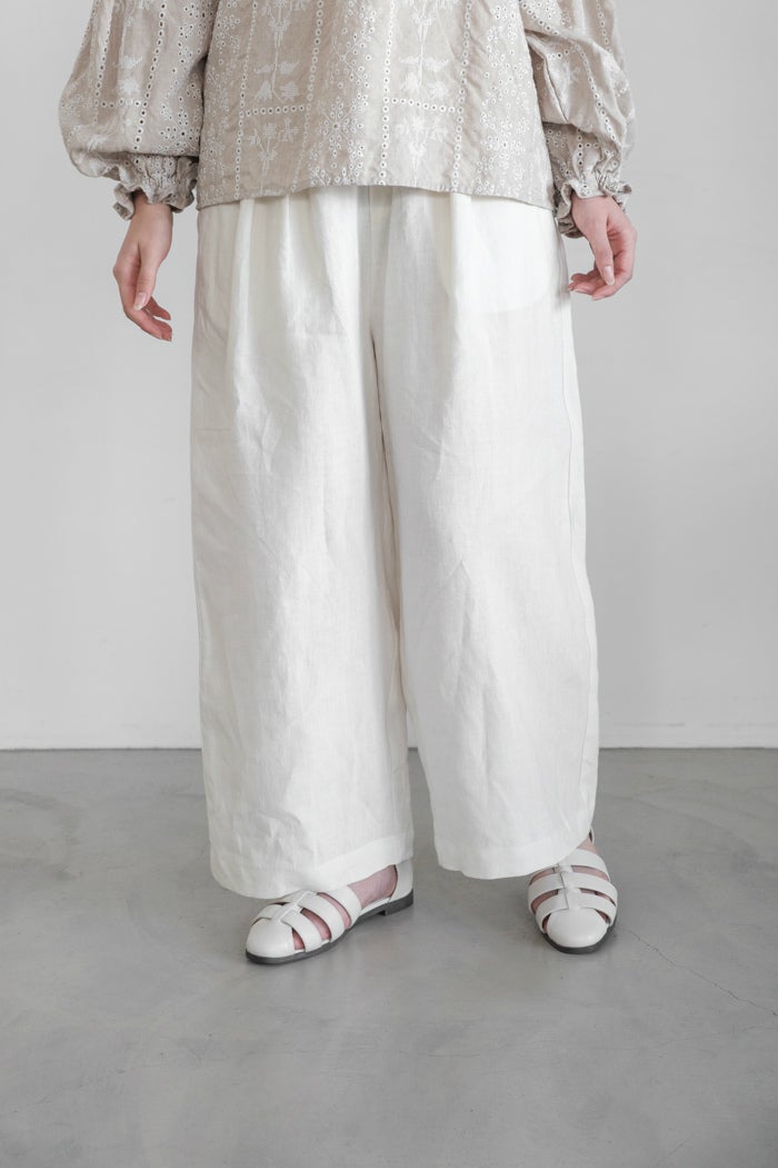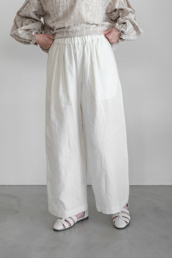 他の画像を見る maison de soil メゾン ド ソイル 40s FRENCH LINEN DYED CANVAS 2TUCK WIDE EASY PANTS(26SS) ¥ 22,000 税込 お気に入りに登録する