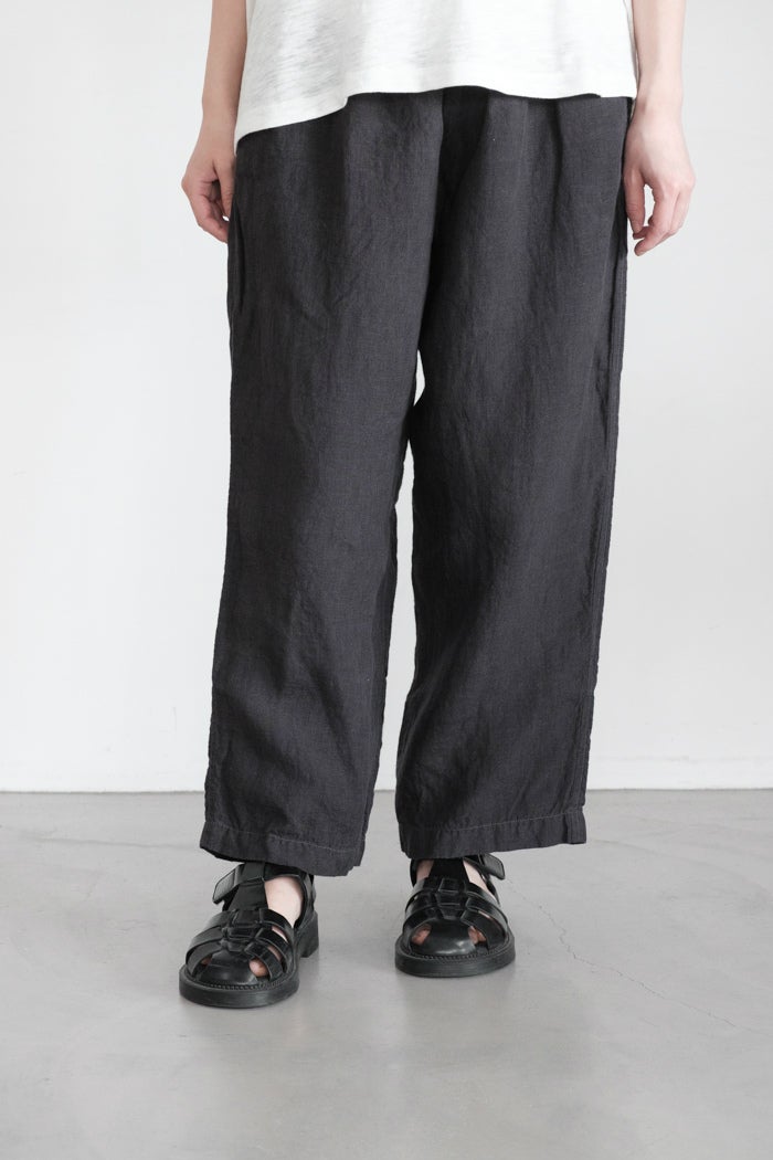 他の画像を見る maison de soil メゾン ド ソイル 40s FRENCH LINEN DYED CANVAS 2TUCK TAPERED EASY PANTS(26SS) ¥ 22,000 税込 お気に入りに登録する