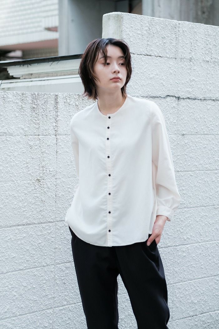 他の画像を見る NO CONTROL AIR ノーコントロールエアー フィブリルレーヨン&ポリエステルシャツポプリン ノーカラーシャツ(24AW/basic) ¥ 20,900 税込 SOLD OUT お気に入りに登録する