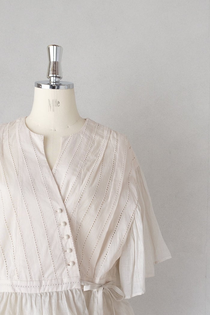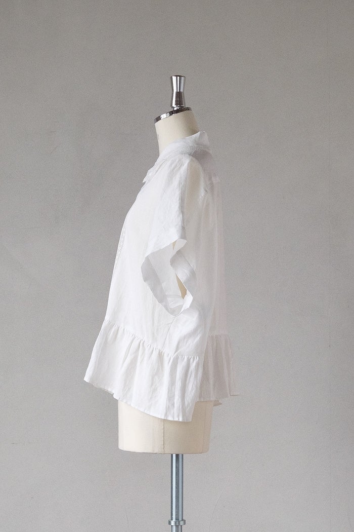 他の画像を見る maison de soil メゾン ド ソイル60s AUTOLOOM LINEN PLAIN OVERDYE FRILL COLLAR LONG SHIRTS(26SS) ¥ 31,900 税込 SOLD OUT お気に入りに登録する