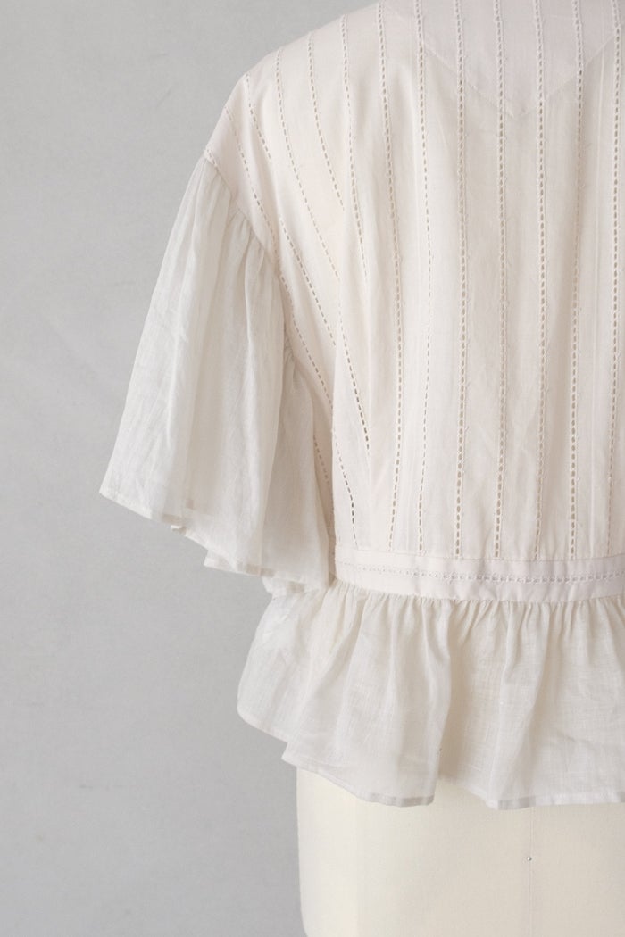 他の画像を見る UNIVERSAL SEVEN ユニヴァーサルセヴン ナチュラルタイプライター イタリアンフィレレースラッフルブラウス(26SS) ¥ 17,600 税込 SOLD OUT お気に入りに登録する