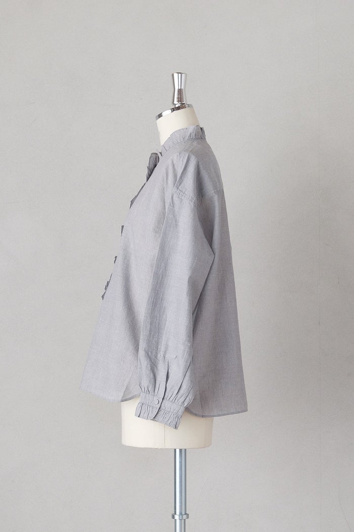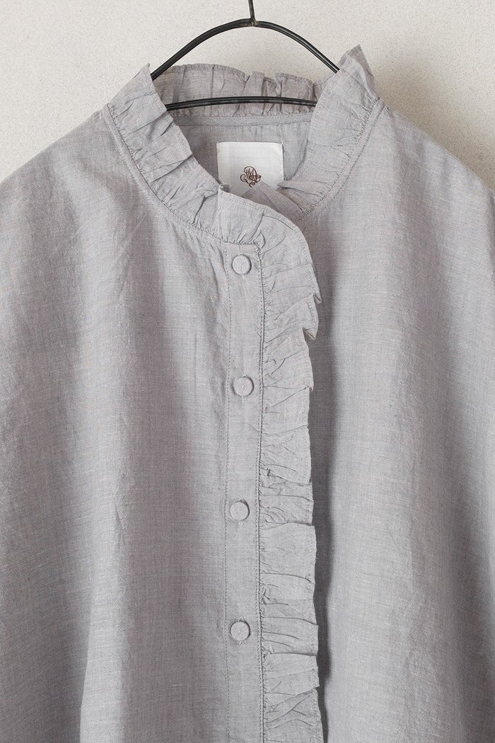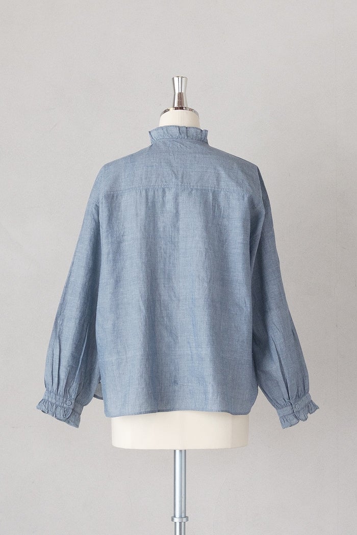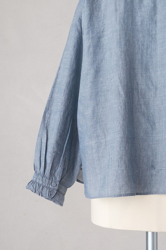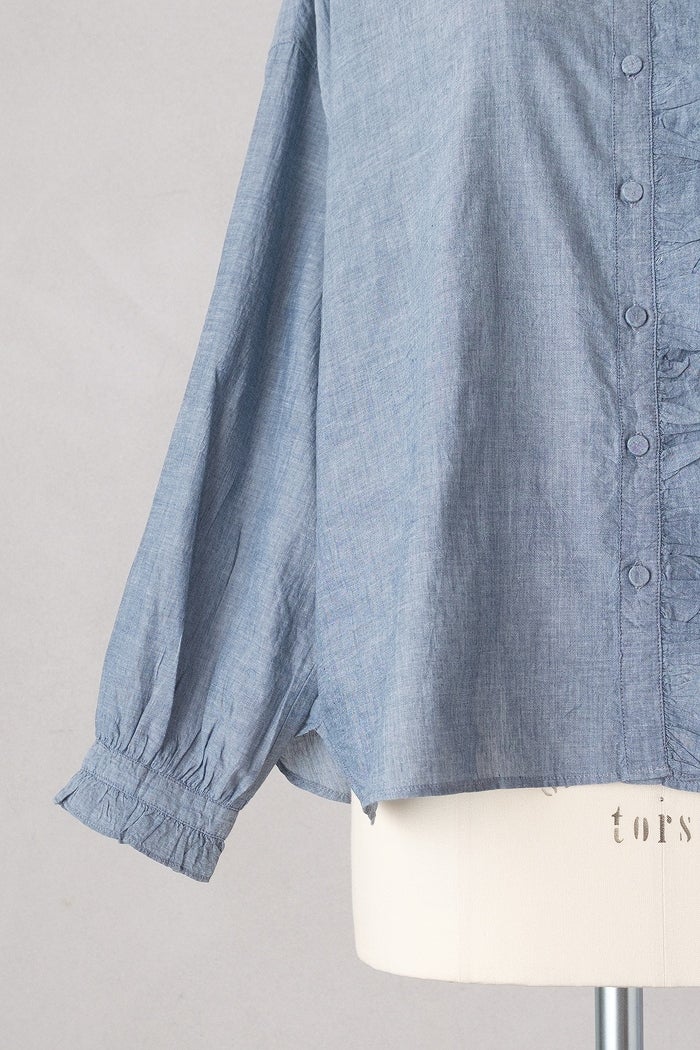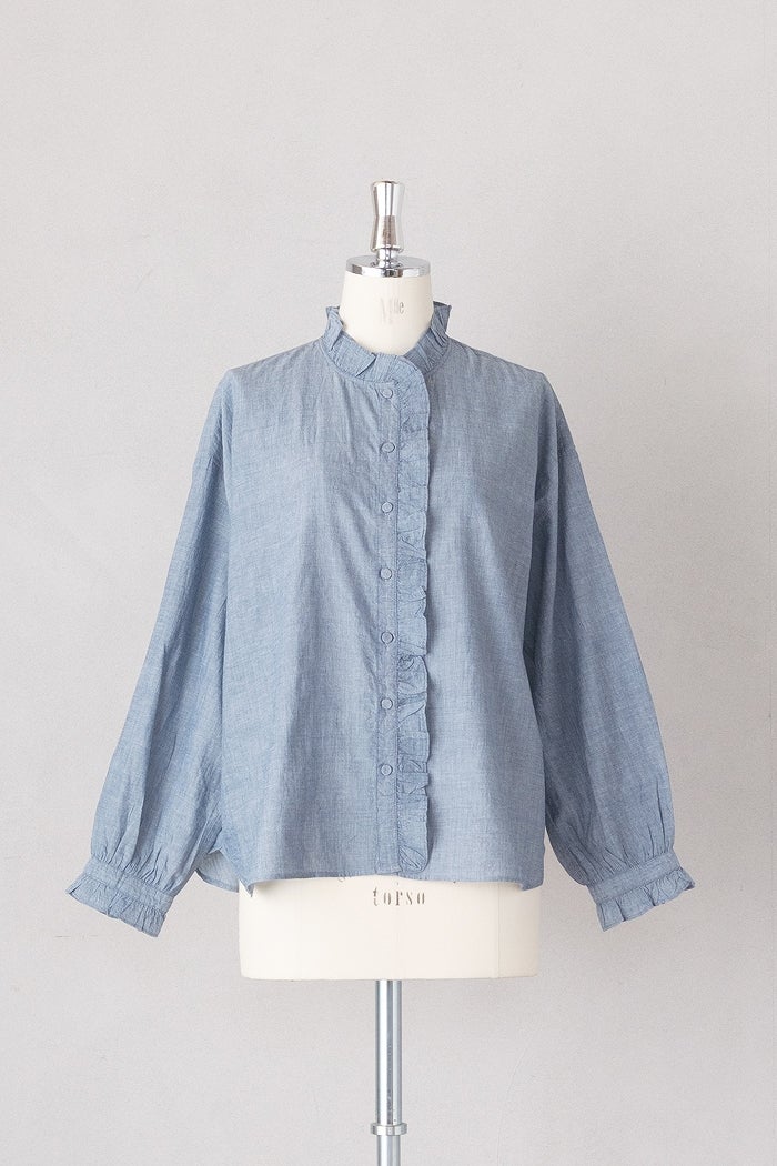 他の画像を見る maison de soil メゾン ド ソイルHANDWOVEN YARN DYE CHAMBRAY FRILL COLLAR SHIRTS(26SS) ¥ 24,200 税込 SOLD OUT お気に入りに登録する