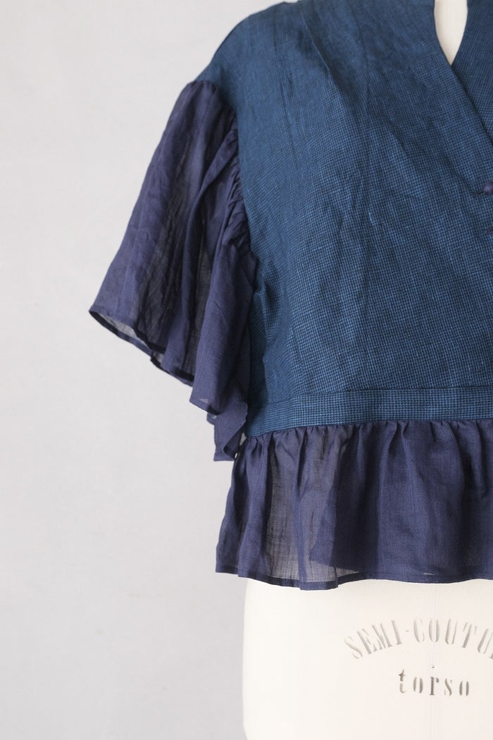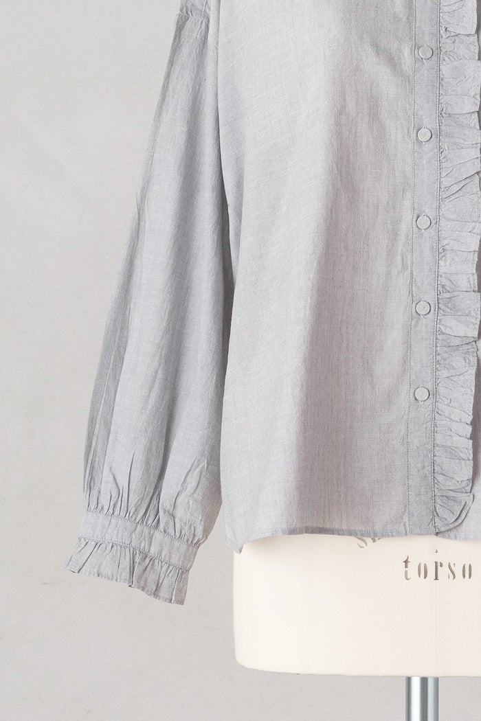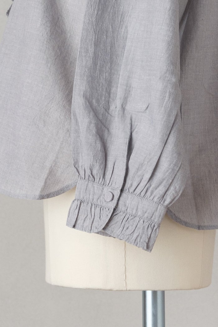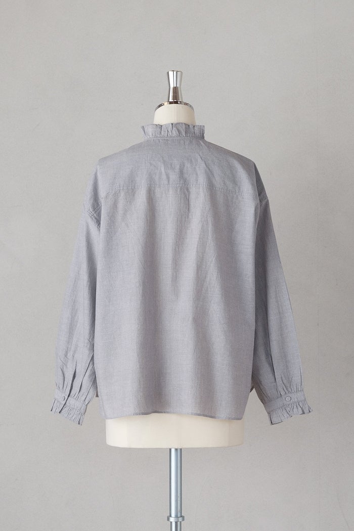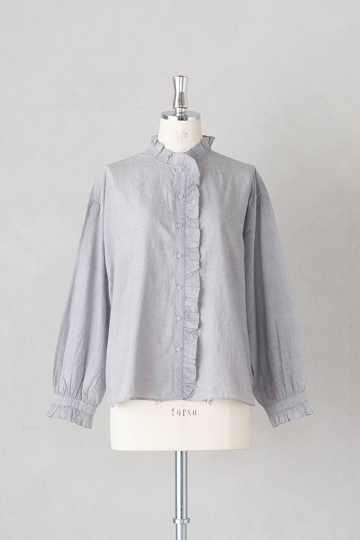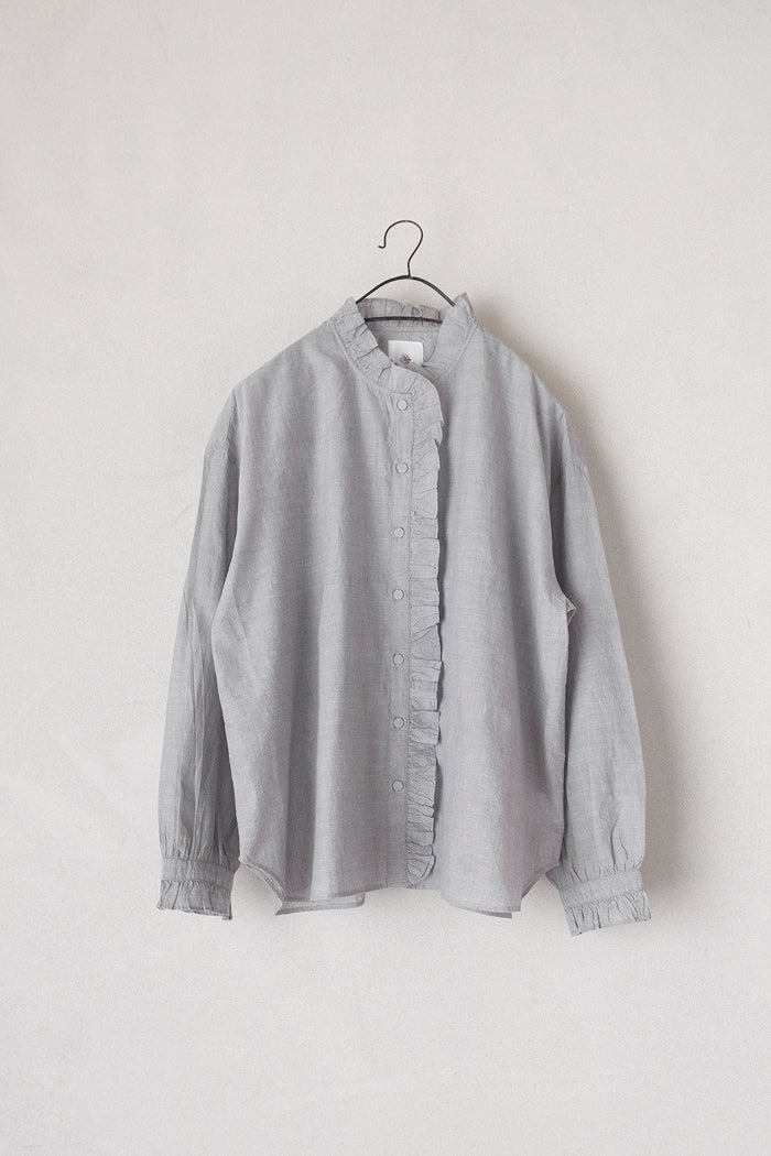 他の画像を見る maison de soil メゾン ド ソイルHANDWOVEN YARN DYE CHAMBRAY FRILL COLLAR SHIRTS(26SS) ¥ 24,200 税込 SOLD OUT お気に入りに登録する