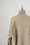 肌触りの良いミドルゲージの糸を使用したタートル。肩線をぐっと落とし、袖の付け根の縫い合わせか背ヨーク切り替えとつながることで、自然な丸みが生まれたニュアンスのあるアイテムです。