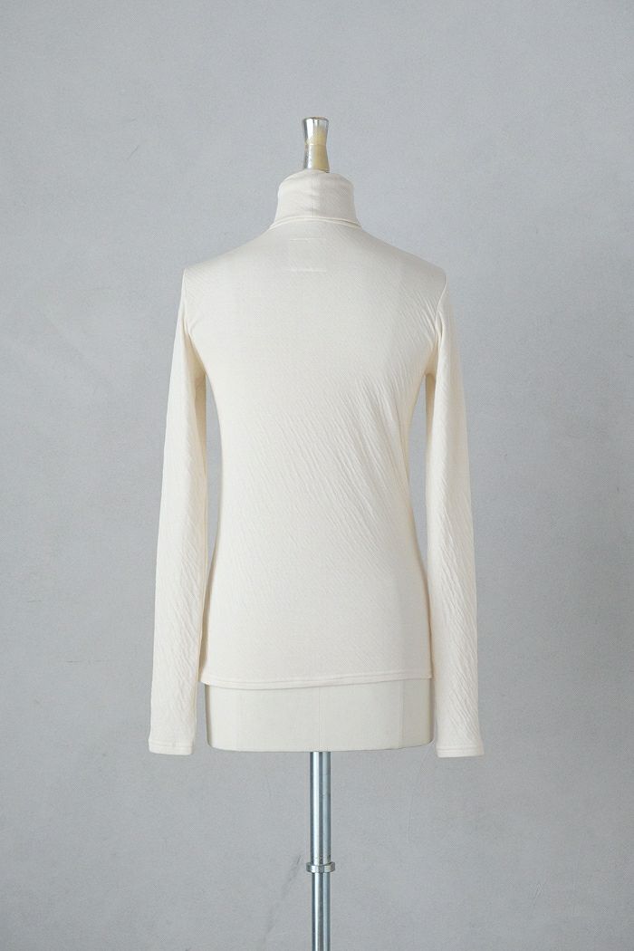 インドで栽培された超長綿を使用したシルクのような光沢と柔らかさを持つタートルカットソー。 手摘みで収穫するため天然の油分が失われず独特のヌメリ感があり、 ふんわり軽く優しいタッチが特徴の接結生地。 お肌の弱い方にも安心なコットンダブルガーゼは、表面に畝があり表情のある素材感です。