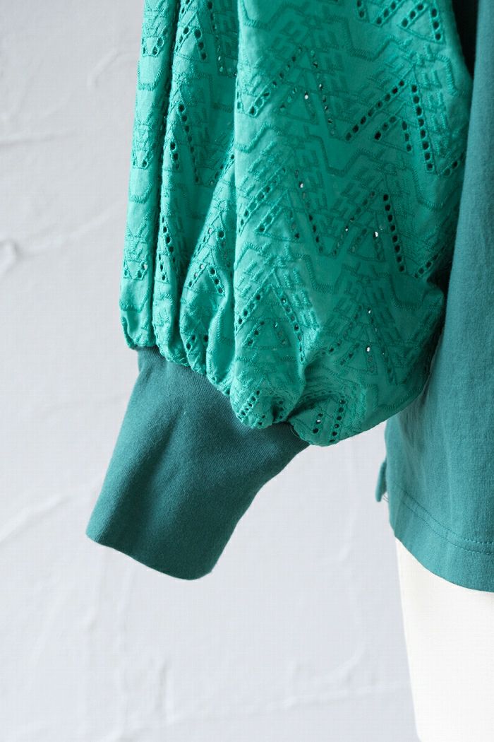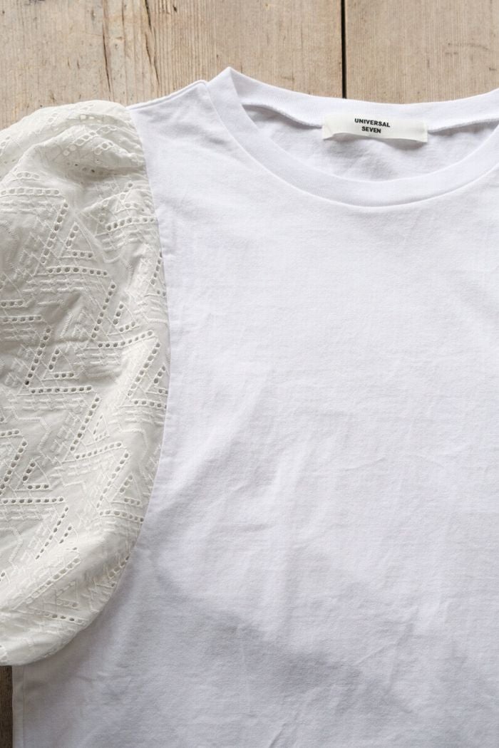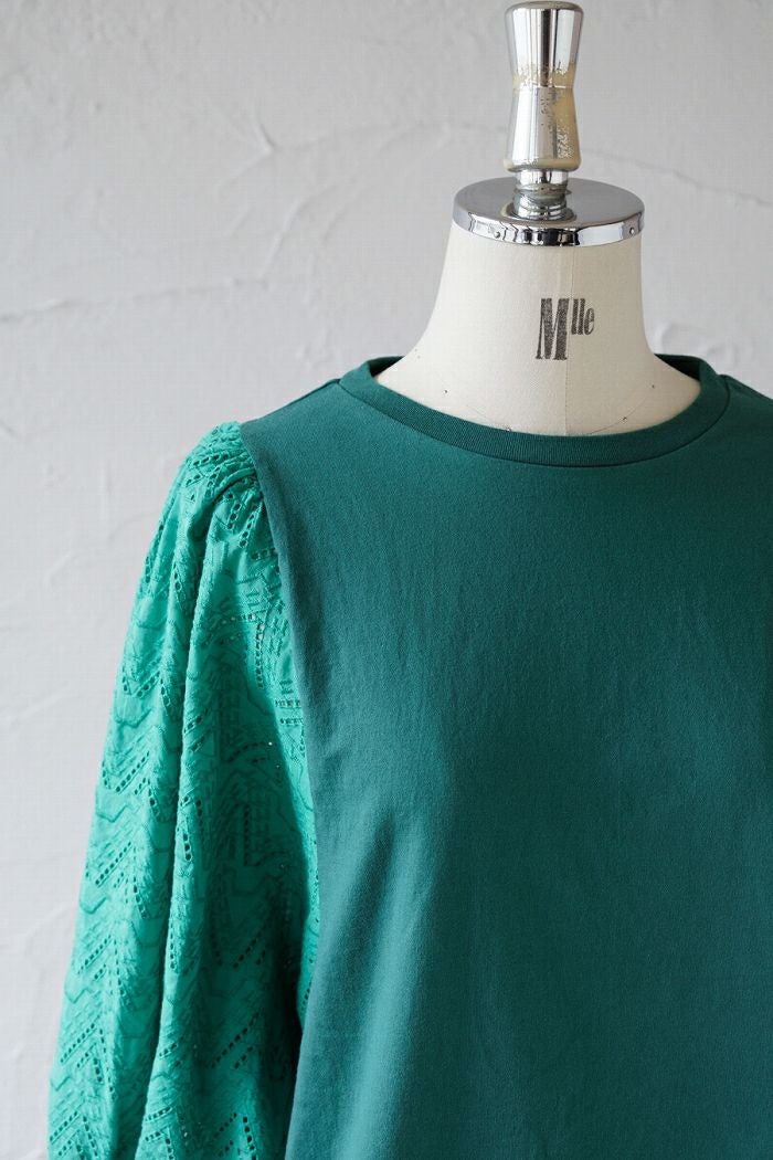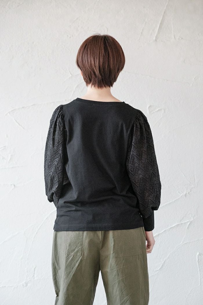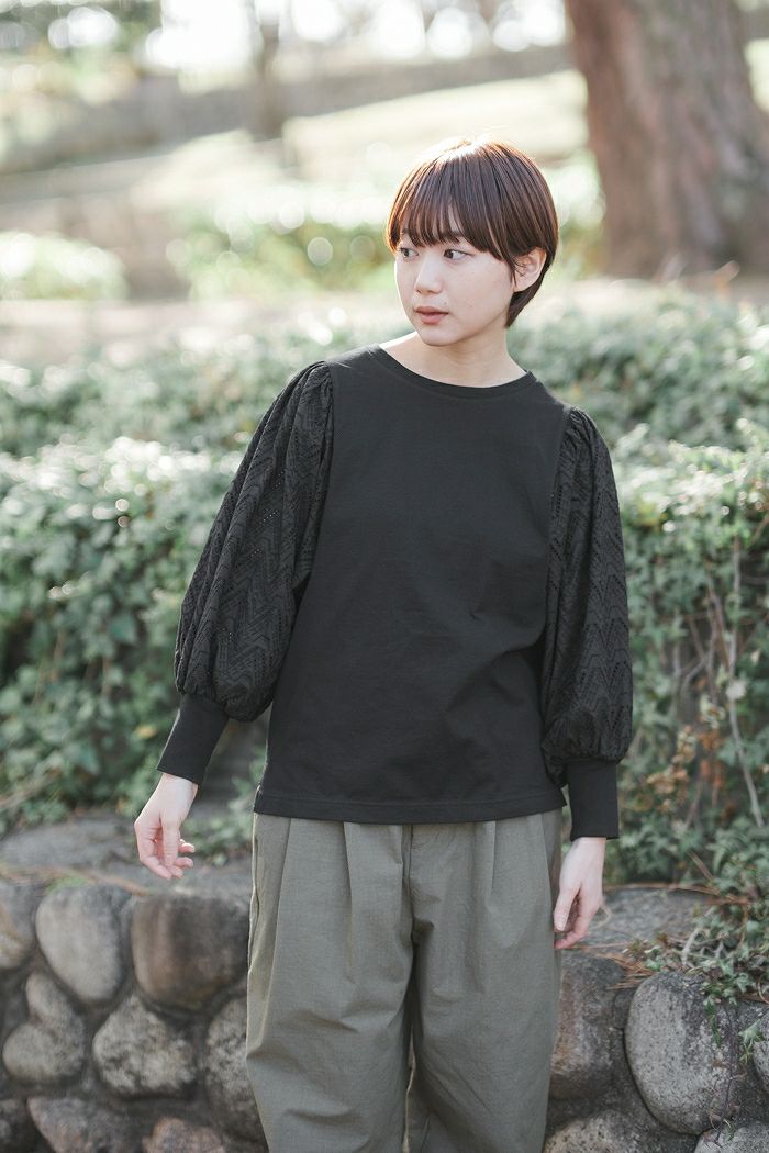 他の画像を見る UNIVERSAL SEVEN ユニヴァーサルセヴン クラシック天竺 エンブロイダリーレーススリーブプルオーバー(SS) 定価 ¥ 12,650 34%OFF ¥ 8,400 税込 お気に入りに登録する