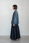 程よくゆとりをもたせ、ゆったりとしたインナーの上にも重ねやすいサイズ感に仕上げました。前裾部分のまあるいカットとお行儀よく並んだダブルボタンで、羽織った時にきまり過ぎずやわらかで抜け感のある印象に。同シリーズのスカートやパンツとのセットアップアップも◎