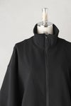 両サイドにスラッシュポケットが付いたデザイン。フロント部分は上下どちらからも開閉できる逆開ファスナー。襟元と裾はリブ仕様となっています。同素材のスカート、パンツと組み合わせて着用していただけるデザイン。季節の変わり目のアウターとして活躍する1枚です。