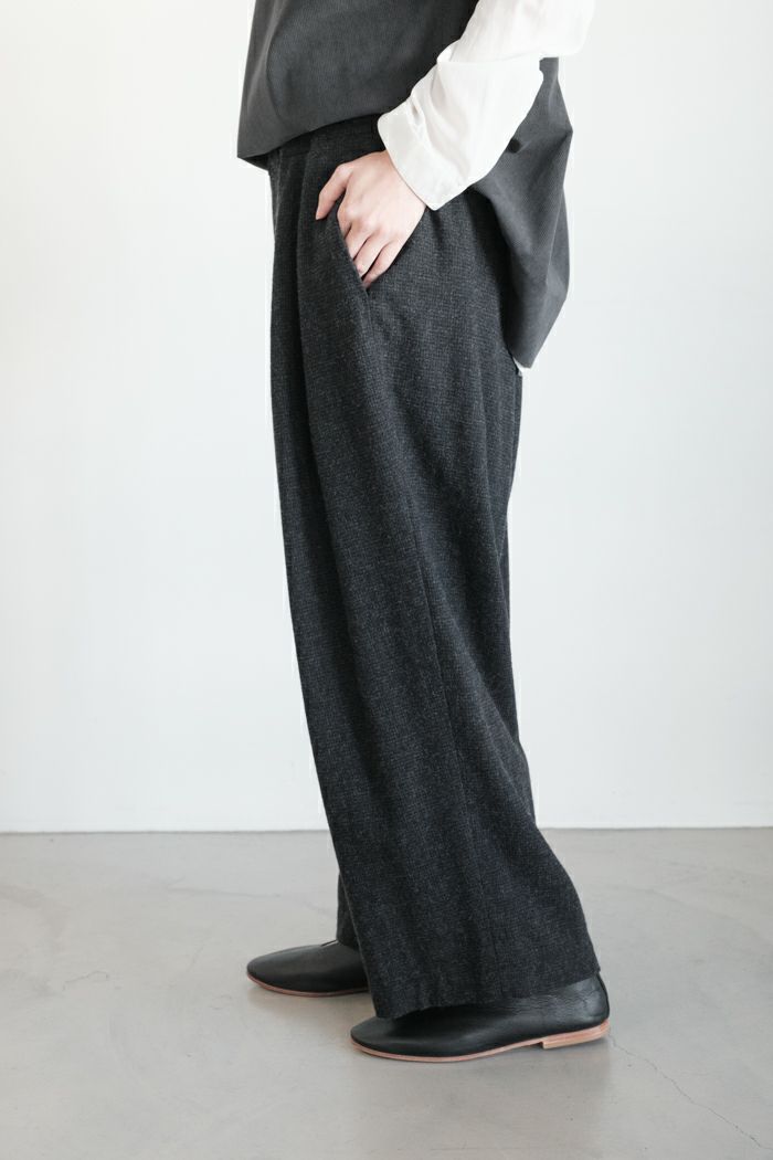 他の画像を見る CULLNI クルニ Double Satin 2Tuck Drawstring Semi Wide Pants(25AW) Ladys&Mens ¥ 36,300 税込 お気に入りに登録する