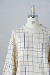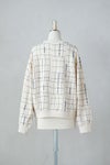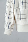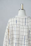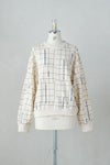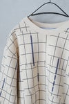プリントの色に合わせた襟ぐりのテープもポイントです。 撮影の現場や舞台で使われる床の目印(バミリ)をイメージしたプリントを施した裏毛素材でできたプルオーバー 今期のテーマを閉じ込めたユニークなデザインが特徴です。 ゆったりとしたスタンダードなフォルム、テキスタイルが印象的なのでこれを1枚着るだけでコーディネートが決まります。