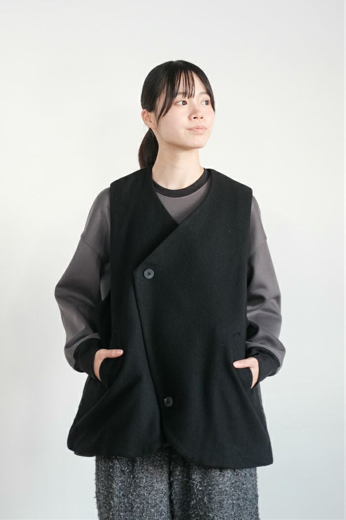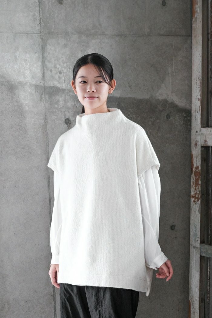 ウール&コットン 接結二重編み ボトルネックベスト(24AW)