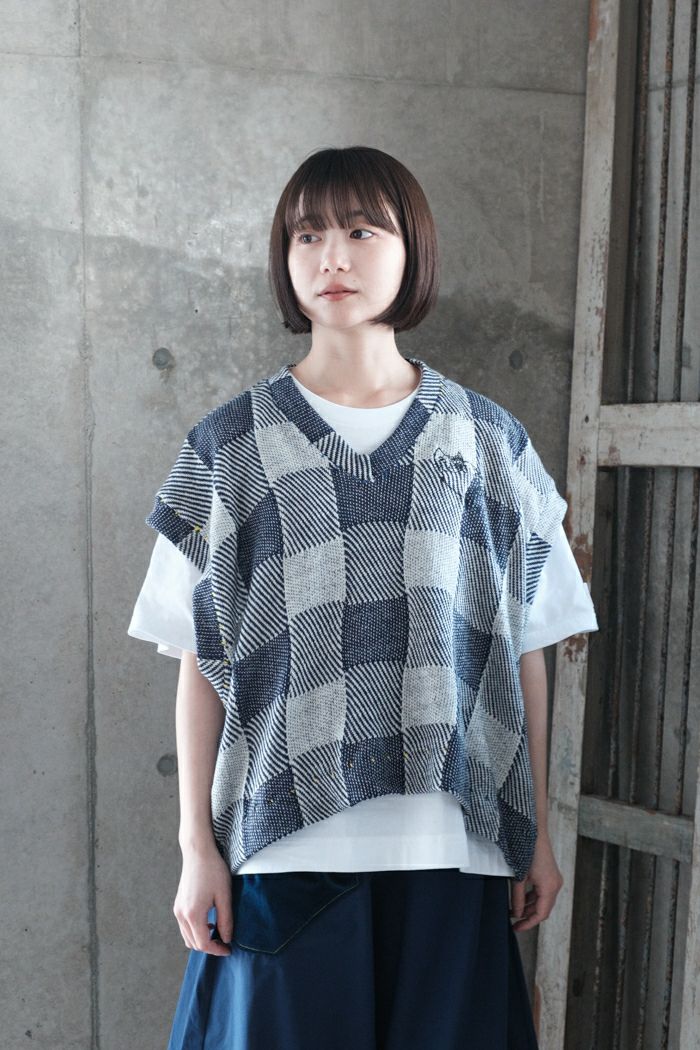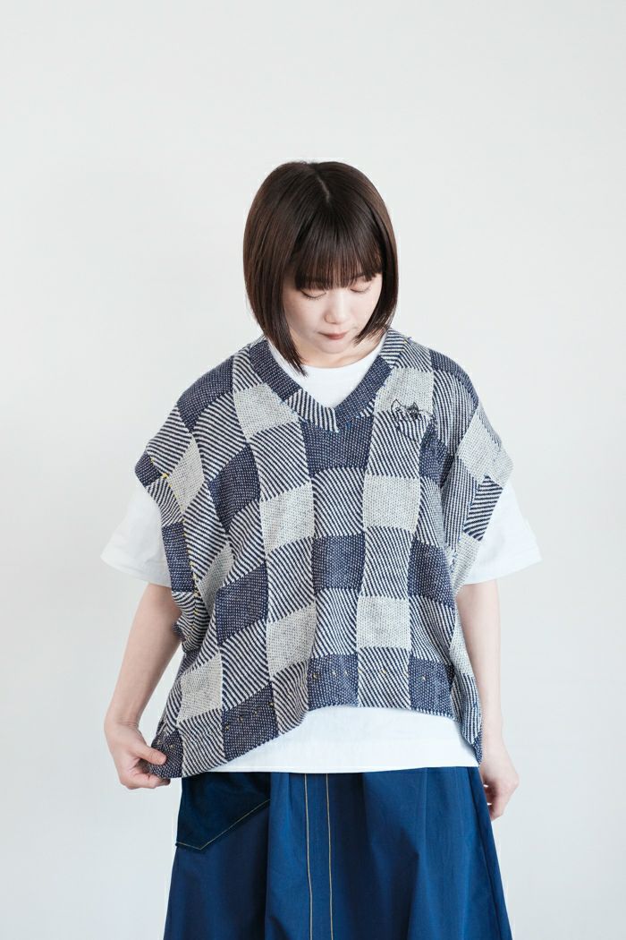 猫のいるブロックニットベスト(25SS)