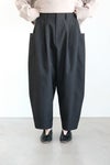 深めの股上で、丸みを帯びたワイドシルエットながら、