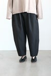 深めの股上で、丸みを帯びたワイドシルエットながら、