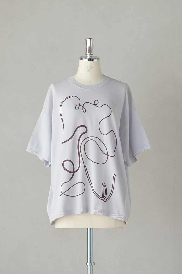 縫製=ステッチをアートのように描いた半袖プルオーバーニット