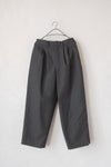 ヘムにかけてたっぷりとワイドシルエットにに仕上げたパンツ。動くたびにドレープが生まれ、表情を加えてくれます。