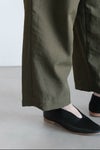 裾口にはスナップボタンを装飾し、ボタンを留めることでワイドからテーパードのシルエットを変えることが可能です。