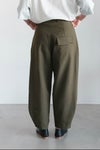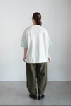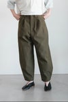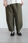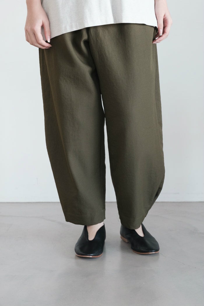 ヘムにかけてたっぷりとワイドシルエットにに仕上げたパンツ。動くたびにドレープが生まれ、表情を加えてくれます。