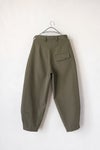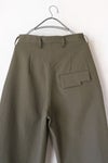 裾口にはスナップボタンを装飾し、ボタンを留めることでワイドからテーパードのシルエットを変えることが可能です。