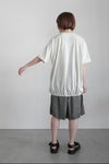 後身頃の裾部分にはゴムが入り、ふんわりとした丸みを帯びたシルエットを描いています。