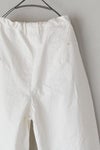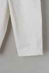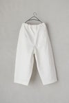素材は手作業で染め、ムラ感と天日ワッシャーで仕上げた、深いシワが特徴の高密度コットンツイルを使用。しっかりした素材感で、履き込んで馴染ませていきたいアイテム。ワイドなシルエットなので、カジュアルにシンプルなTシャツで着こなして欲しい。