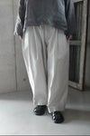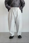 深いウエストタックでゆったりとしたシルエットのワイドイージーパンツ。 素材は手作業で染めたヴィンテージ感のあるムラ感と天日干しによるシワ感が特徴の40タイプライターを使用しています。