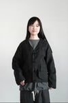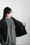 深めに開いたVネックのウールリネンブルゾン。
