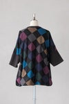 後身頃にオリジナルのジャカードを使用したビッグシルエットのデザインTシャツ。2重織アーガイルチェックの袋ジャカードがアクセントになった個性の光るアイテムです。