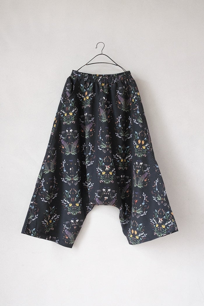 股下がぐっと下がったワイドサルエルのシルエットで、シワになりにくいさらりとした肌触り。オリジナリティの高いパンツは夏のマストアイテムです。 デザイナー自身がやりすぎたと振り返るモチーフの多さも魅力。