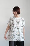 シワになりにくいさらりとした肌触り。オリジナリティの高いTシャツは夏のマストアイテムです。 デザイナー自身がやりすぎたと振り返るモチーフの多さも魅力。