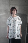 シワになりにくいさらりとした肌触り。オリジナリティの高いTシャツは夏のマストアイテムです。 デザイナー自身がやりすぎたと振り返るモチーフの多さも魅力。